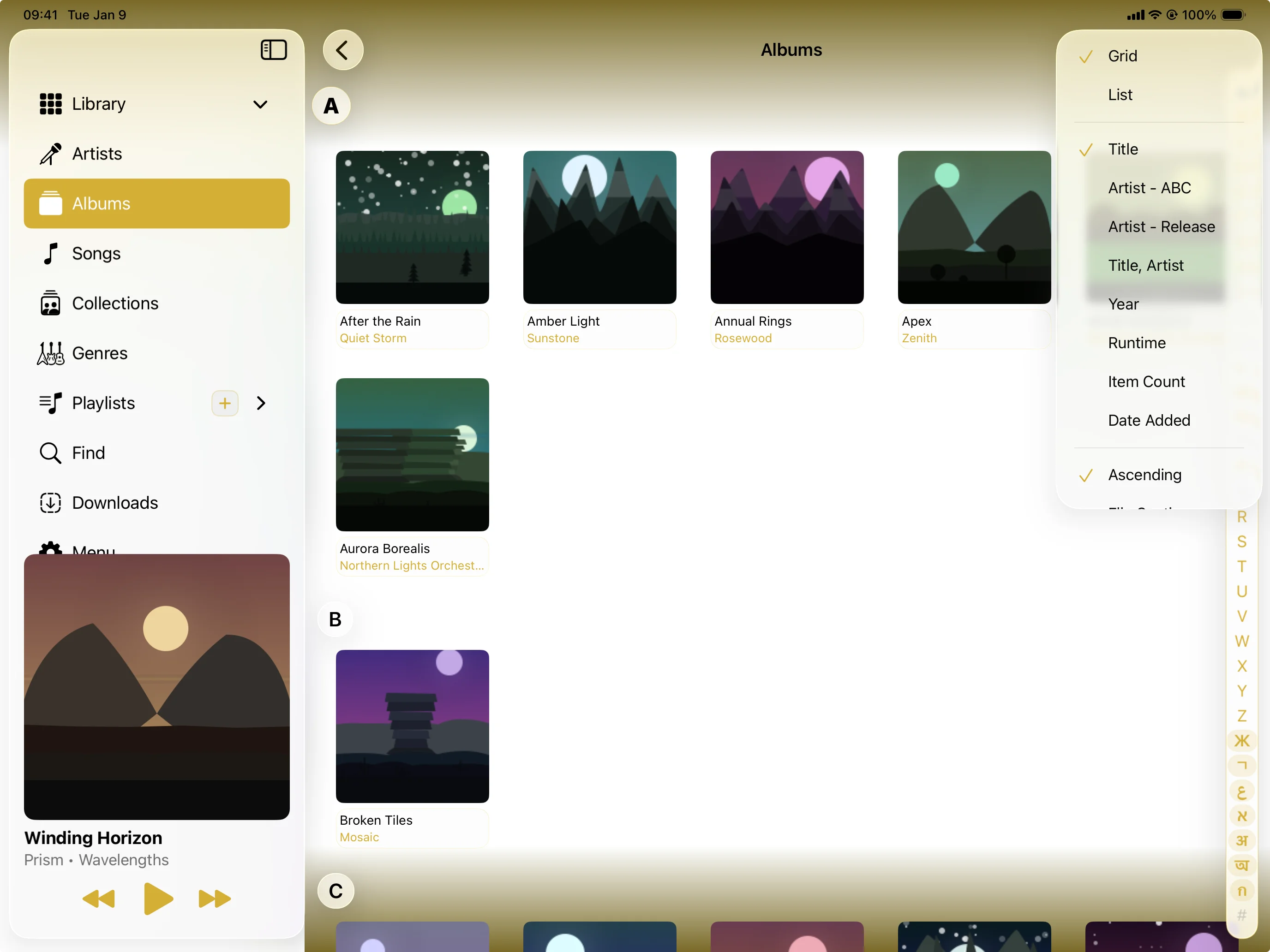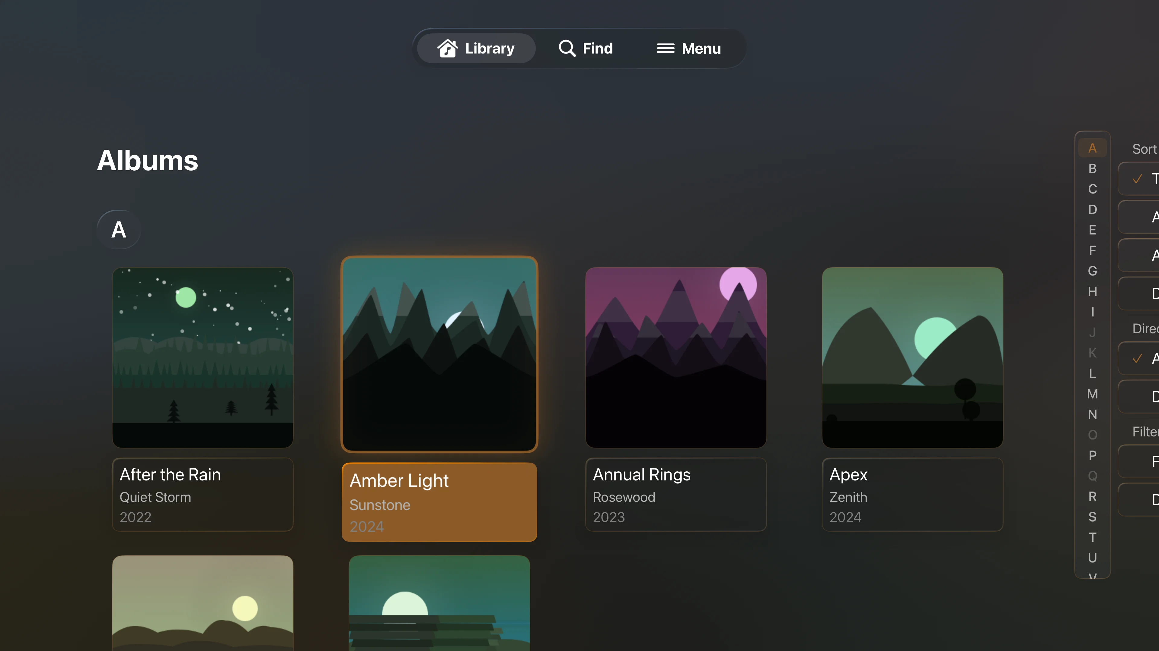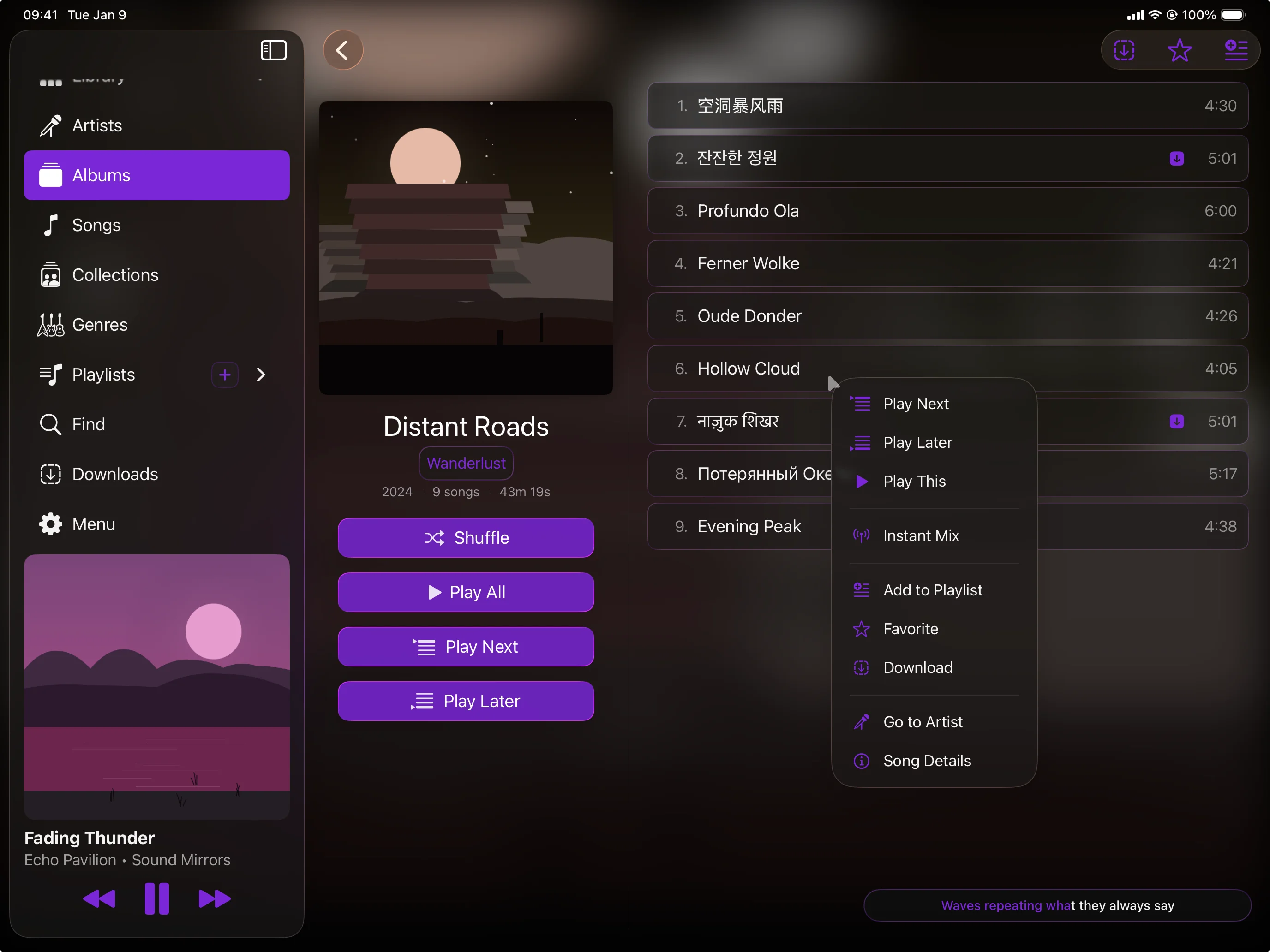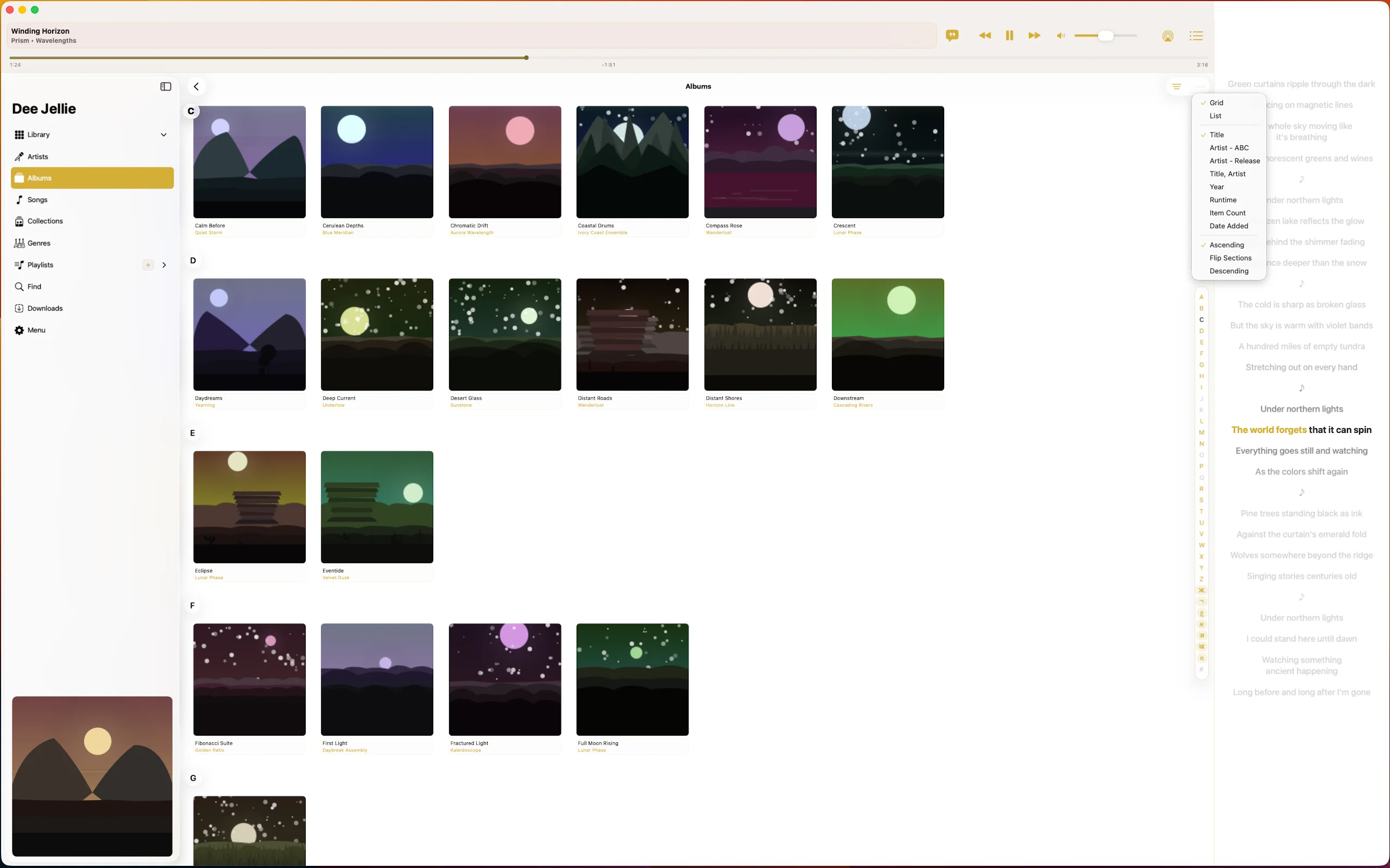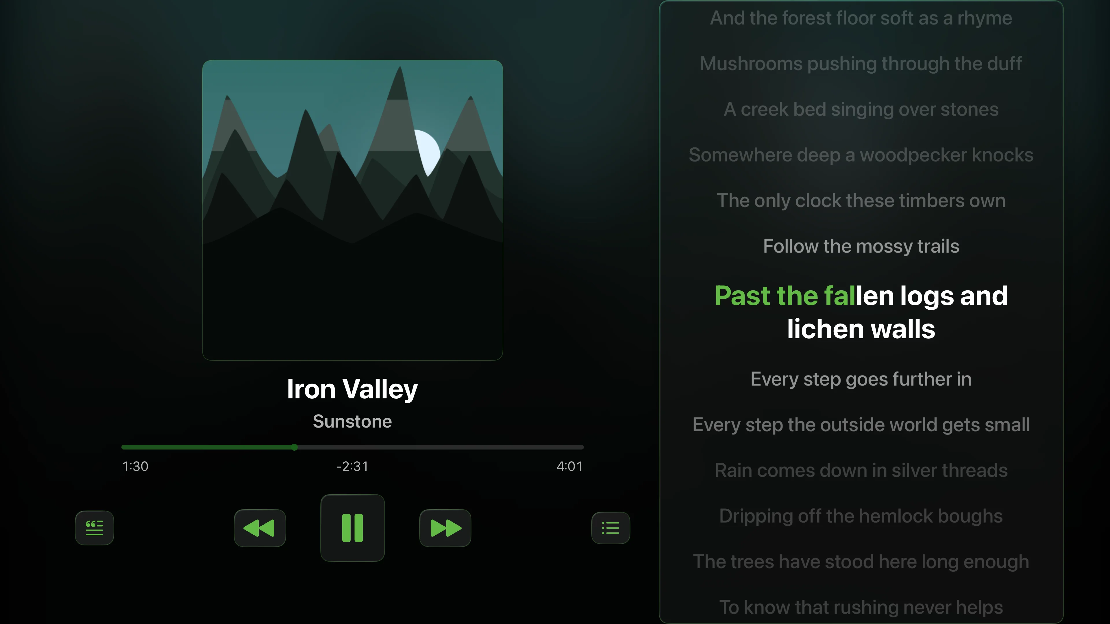 Every detail designed around the listener. Artwork that earns the screen. Controls that land under your thumb. Panels that show up when you need them and fade when you don't.