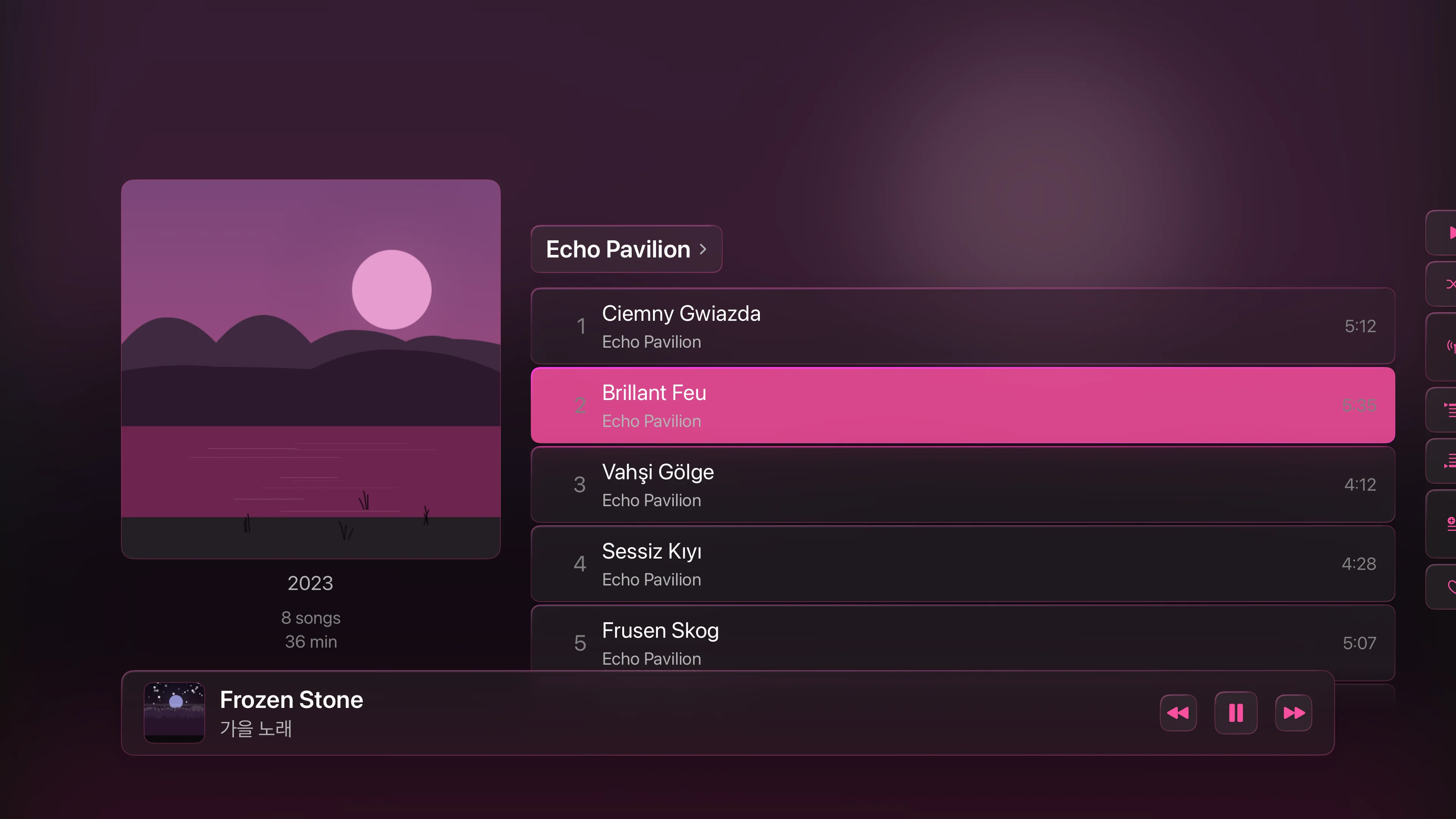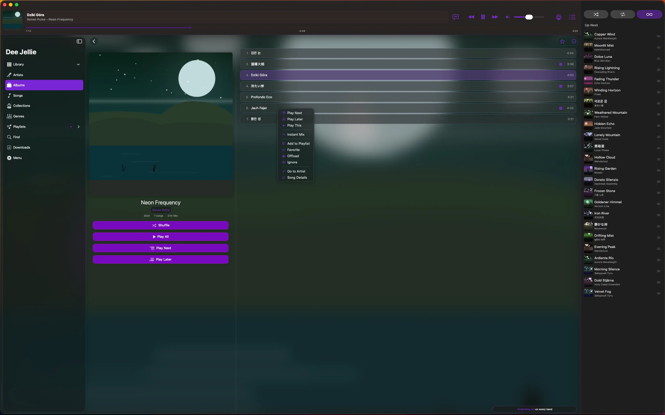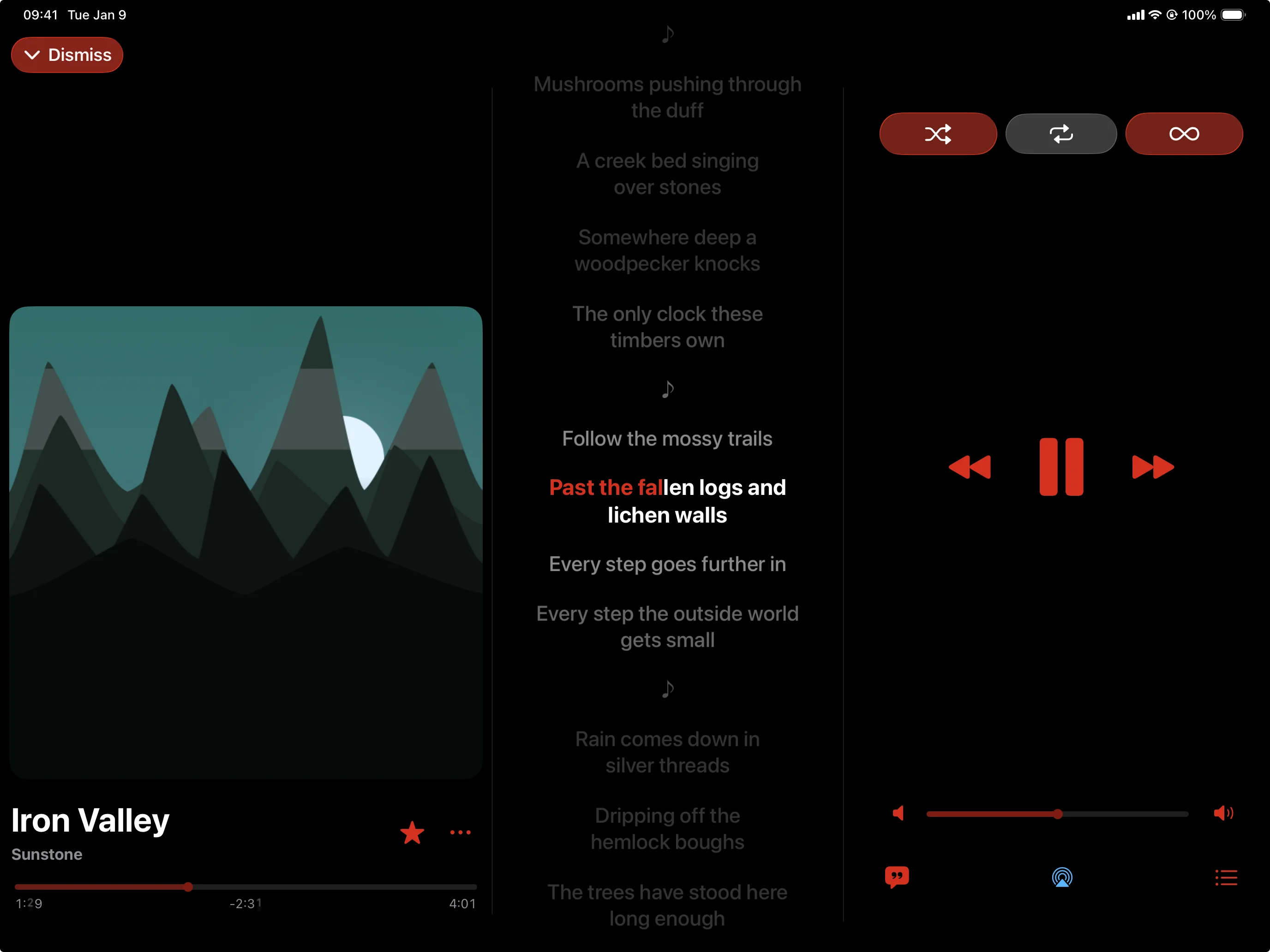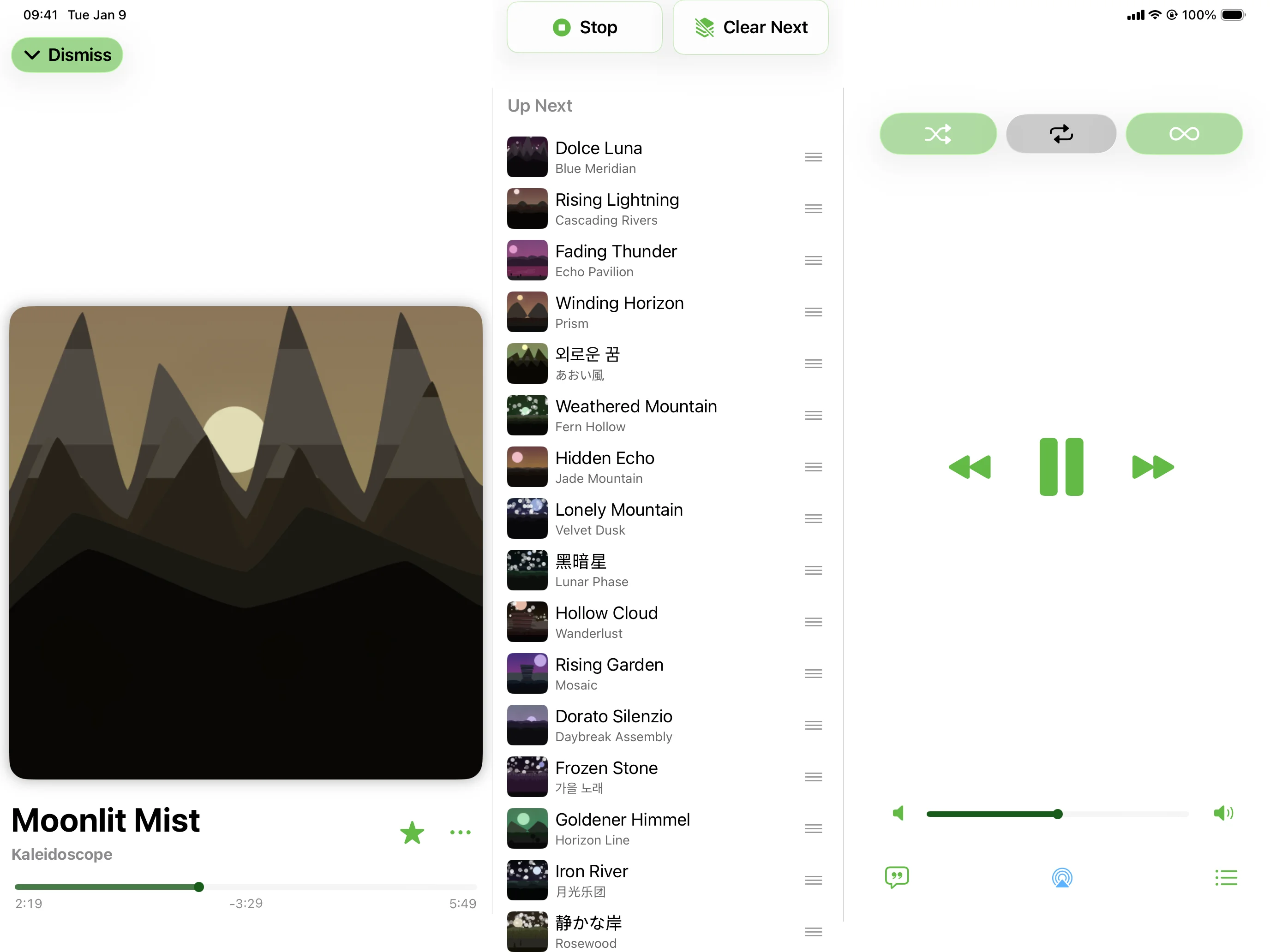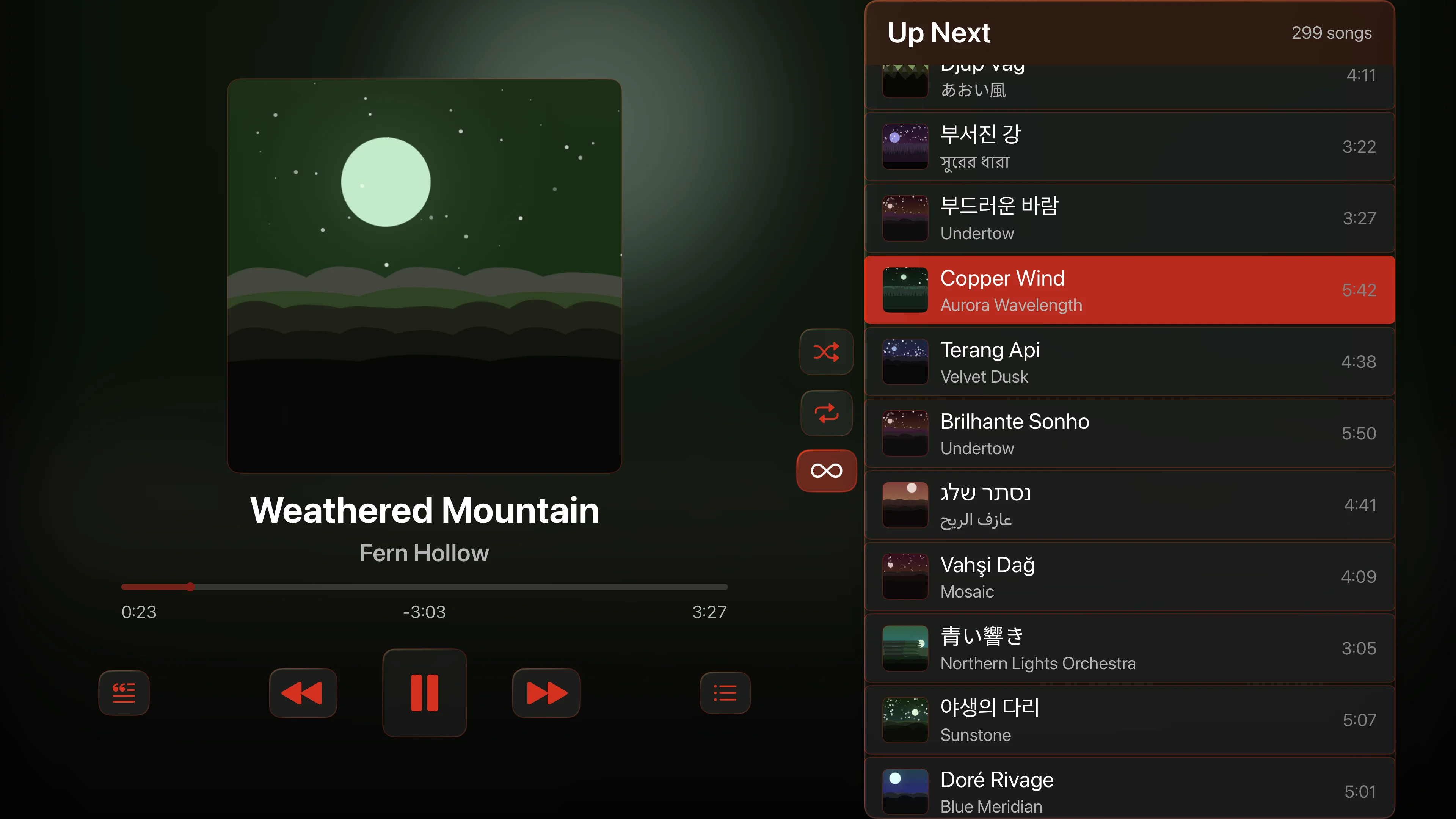 Every detail designed around the listener. Artwork that earns the screen. Controls that land under your thumb. Panels that show up when you need them and fade when you don't.