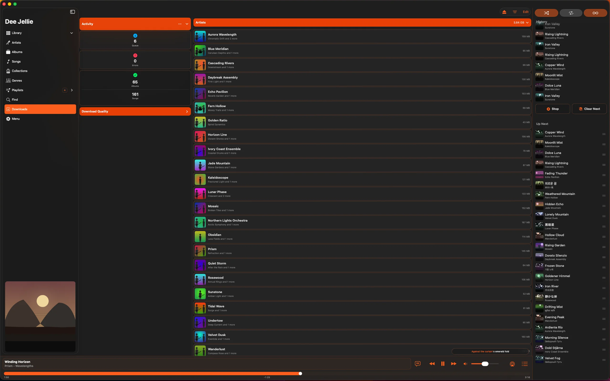 Tap to keep a song forever. Or let Dee Jellie prefetch what's coming up in the queue over Wi-Fi and clear it as you move past, so the next track is already on the device when you need it.